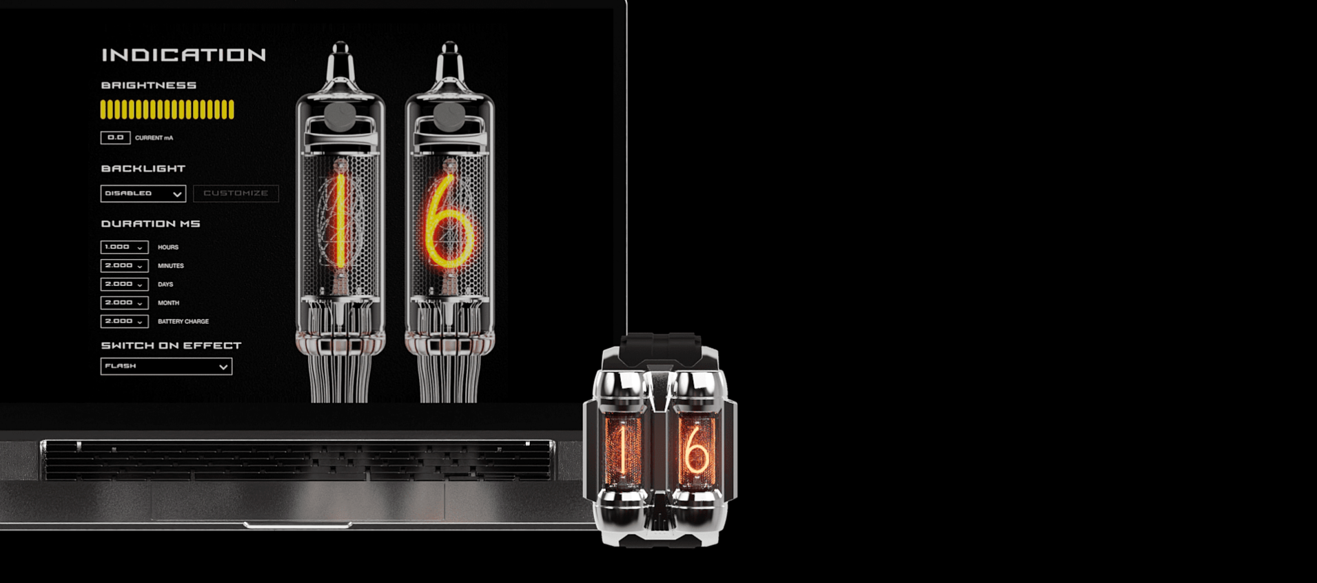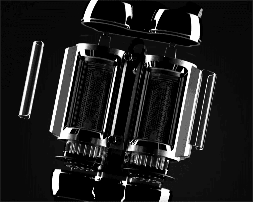This space-age creation relies on yesteryear digital technology with two nixie tubes. ”この宇宙時代の作品は、2つのニキシー管を備えた往年のデジタル技術の賜物だ。”